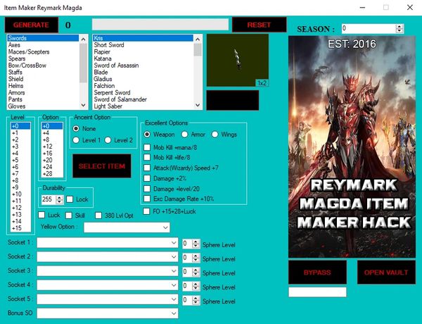 It bypass the server side to connect to their DATA BASE, depends on what season items that can be generate or create will appear on the tool including customs items.